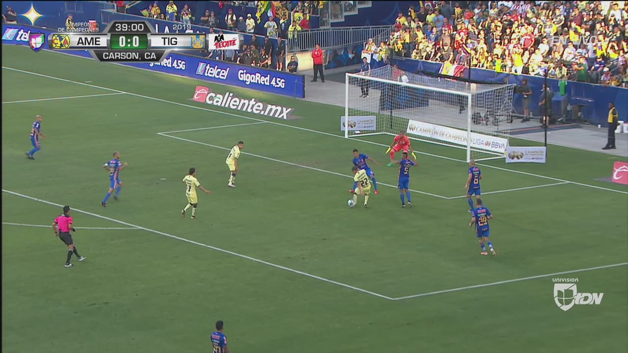 El capitán del América se metió hasta los linderos del área chica pero disparó sin fuerza.