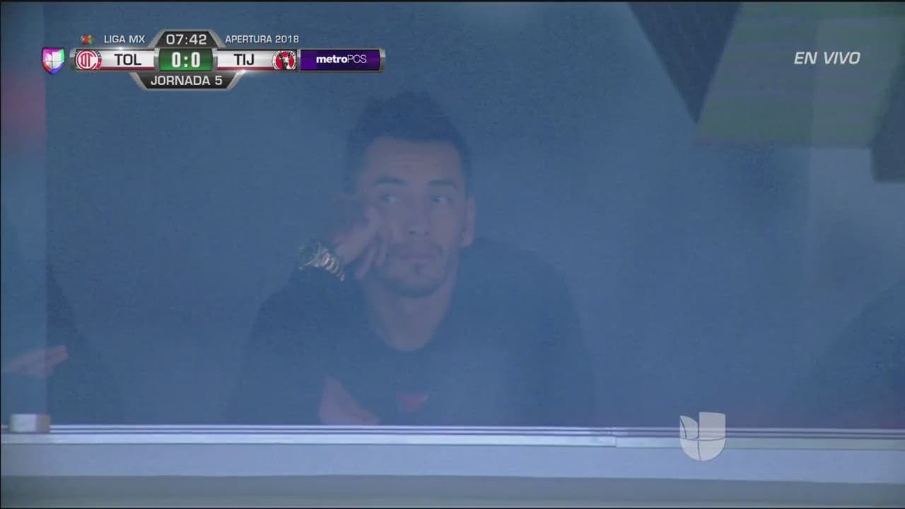 Lesionado, el delantero argentino no puede más que ver el partido de Toluca desde las gradas.