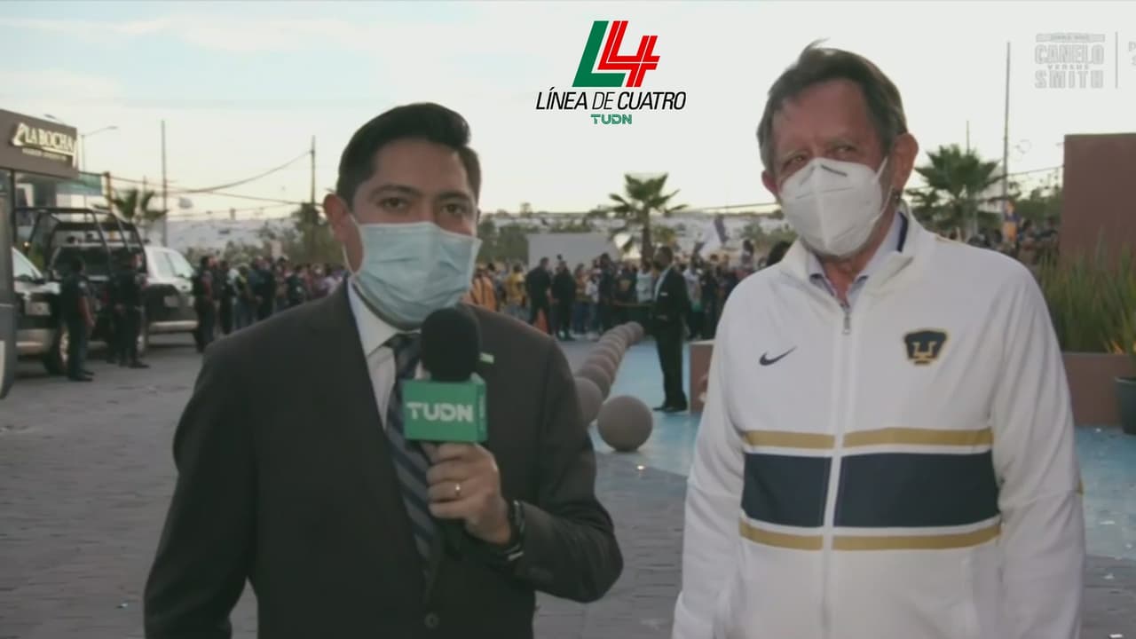 "Ha sido un torneo muy complejo y difícil en muchos sentidos, empezando por la pandemia. La verdad es que queremos dedicarle el juego a la afición universitaria; extrañamos mucho a la afición en nuestro estadio, como todos los equipos, pero la de Pumas es única. Ha sido un torneo muy complicado el inicio para nosotros, el habernos quedando sin técnico; pocas expectativas que nos daban en todos lados y creo que de ahí ha sido muy meritorio lo que ha hecho Pumas. En muchos sentidos ha sido muy completo lo que hemos hecho y esperemos culminar hoy con el campeonato", dijo el directivo en charla con TUDN.