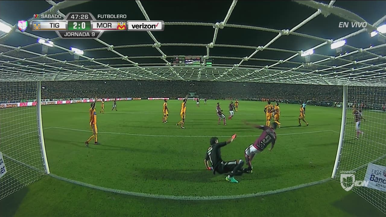 El portero de Tigres y el atacante de Morelia tuvieron un intercambio de infracciones que el árbitro no vio.