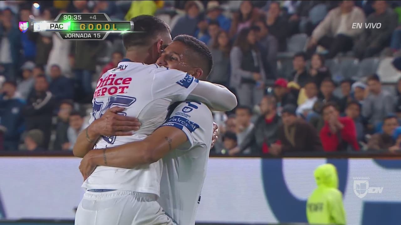 Necaxa se equivocó en la salida, Jara se quitó dos rivales y asistió a Guzmán para que marcara su cuarto gol del juego.