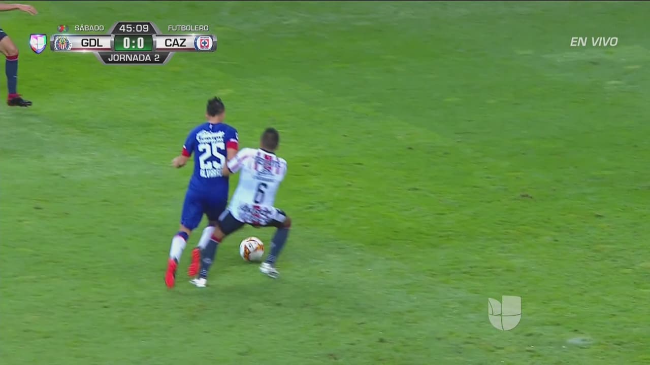 El árbitro decidió dejar correr la jugada tras un contacto entre Roberto Alvarado y ‘Aris’ Hernández que pudo haberse marcado como falta.