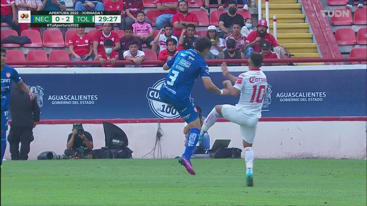 El árbitro lo perdonó después de pelear el balón, el jugador de Toluca ya se hacía expulsado.
