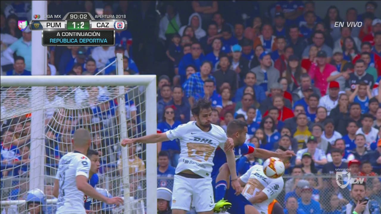 A minutos de finalizar el partido entre la Máquina y los Felinos en CU, el defensa de los cementeros tocó el balón con su brazo izquierdo. Aquí el momento.