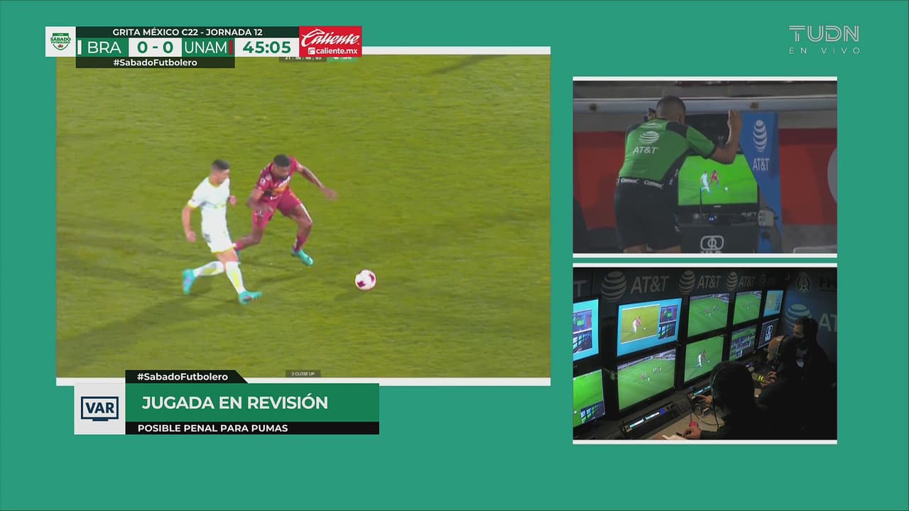 Tras la revisión, se marcó falta de Diogo en el mediocampo y la mano posterior de Mora es extra al 42’.