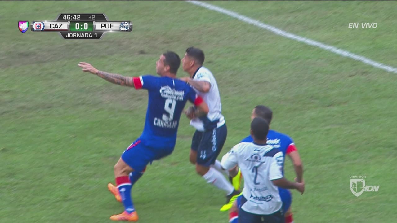 Erik Pimentel jaló al atacante argentino en una jugada clara que el silbante no pitó.