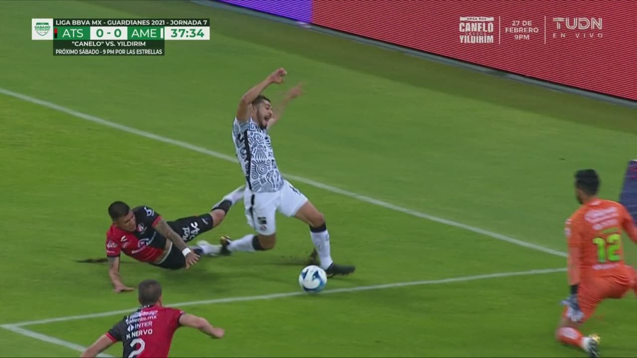 Las Águilas del América se pusieron en ventaja ante Atlas con un polémico penal cobrado a dos toques entre Sebastián Córdoba y Henry Martin para emular suceso de hace 48 años.