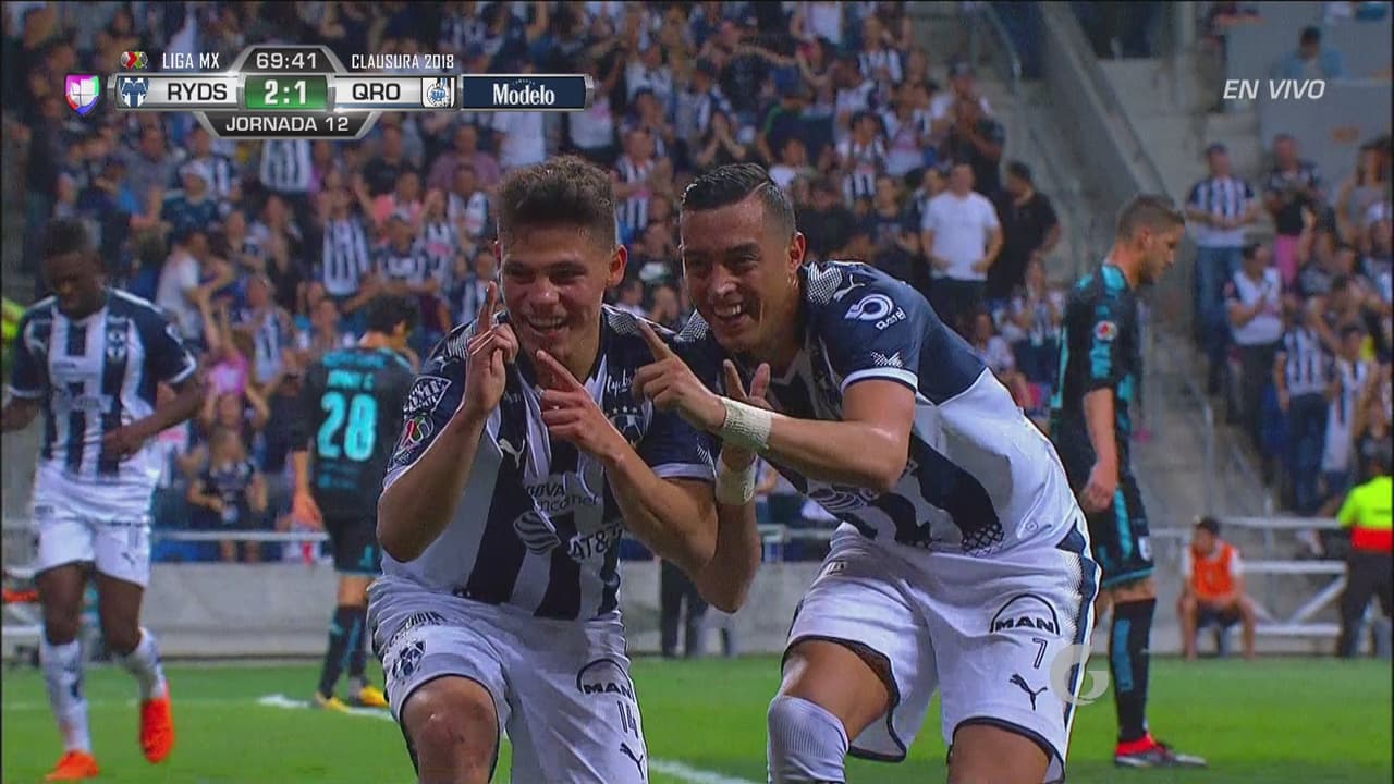 Avilés Hurtado toca la pelota a Alfonso González quien sacó un potente disparo dentro del área para vencer al guardameta queretano y marcar el 3-1 a favor de Monterrey, que domina a placer.