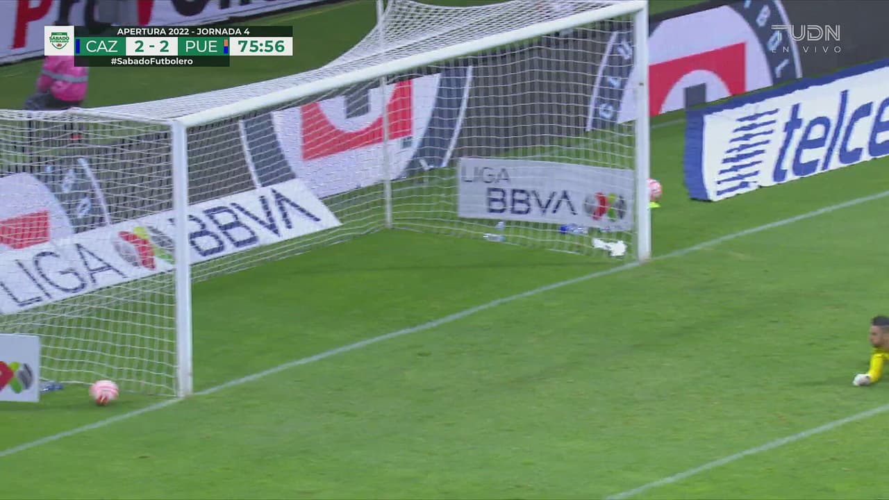 El ex del Puebla sacó un cañonazo cruzado que pasó muy cerca de la portería de Silva al 74’.