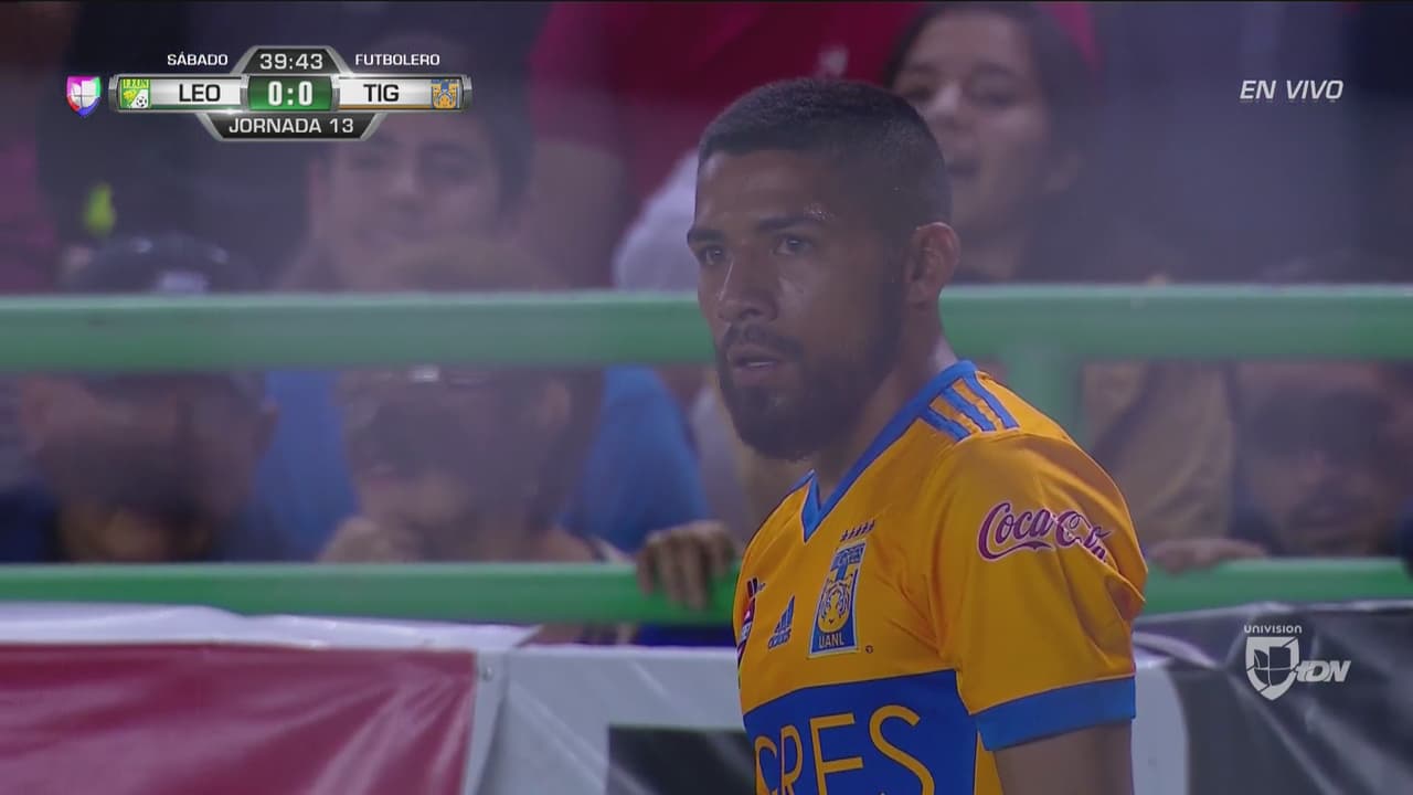 ¡Por poco gol de Aquino! Tigres casi abre el marcador en tiro libre