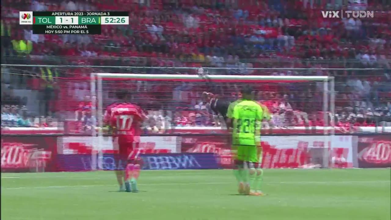 ¡Poste! García dispara y la bola pega en el travesaño del arco de Toluca