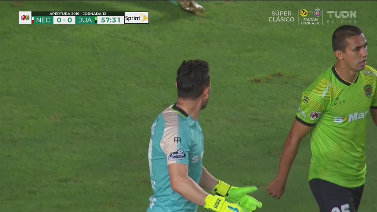 Necaxa tiene doble oportunidad de gol, pero el arquero y la mala puntería de Quiroga lo evitan.