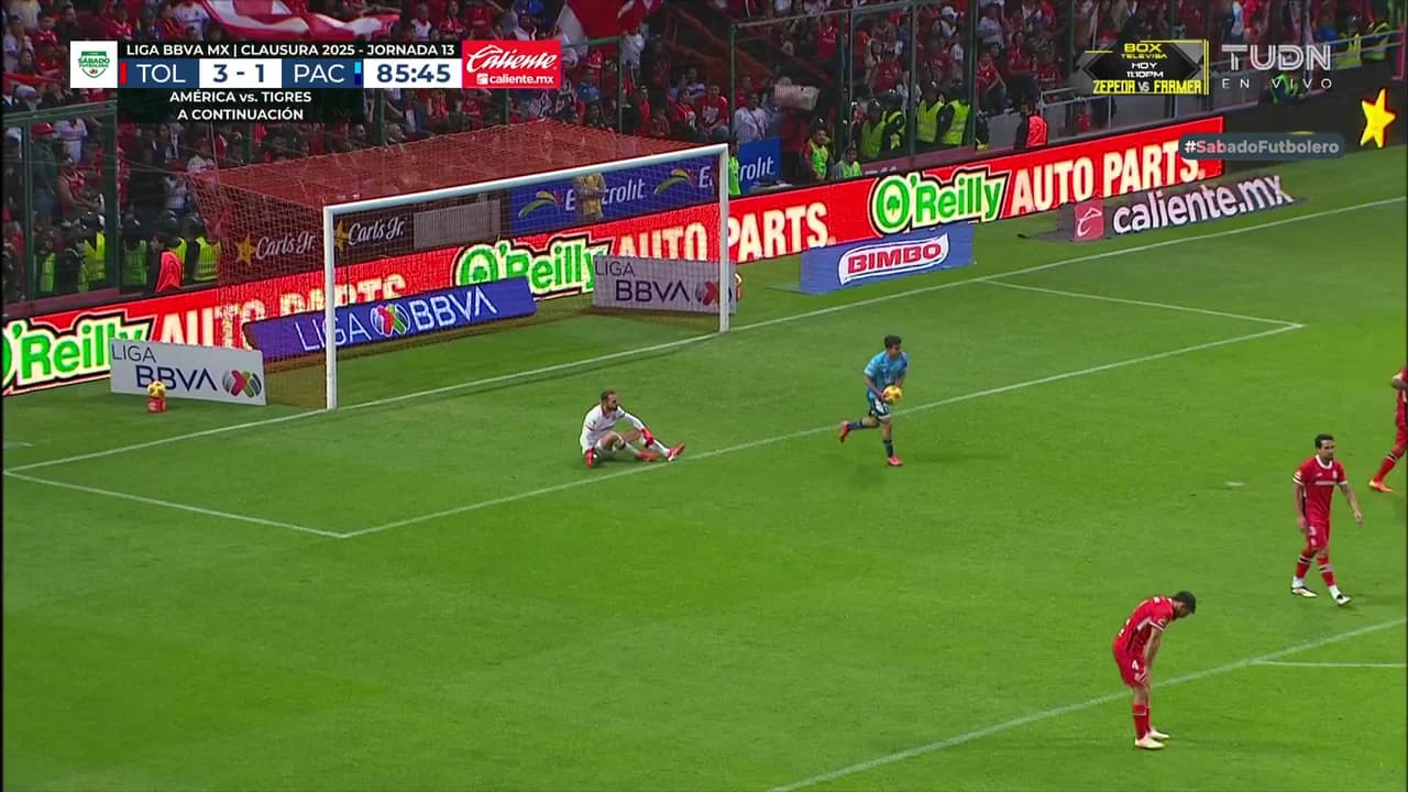 El futbolista de los Tuzos aprovecha la nula marcación del Toluca para probar de distancia y superar al arquero Pau López.
