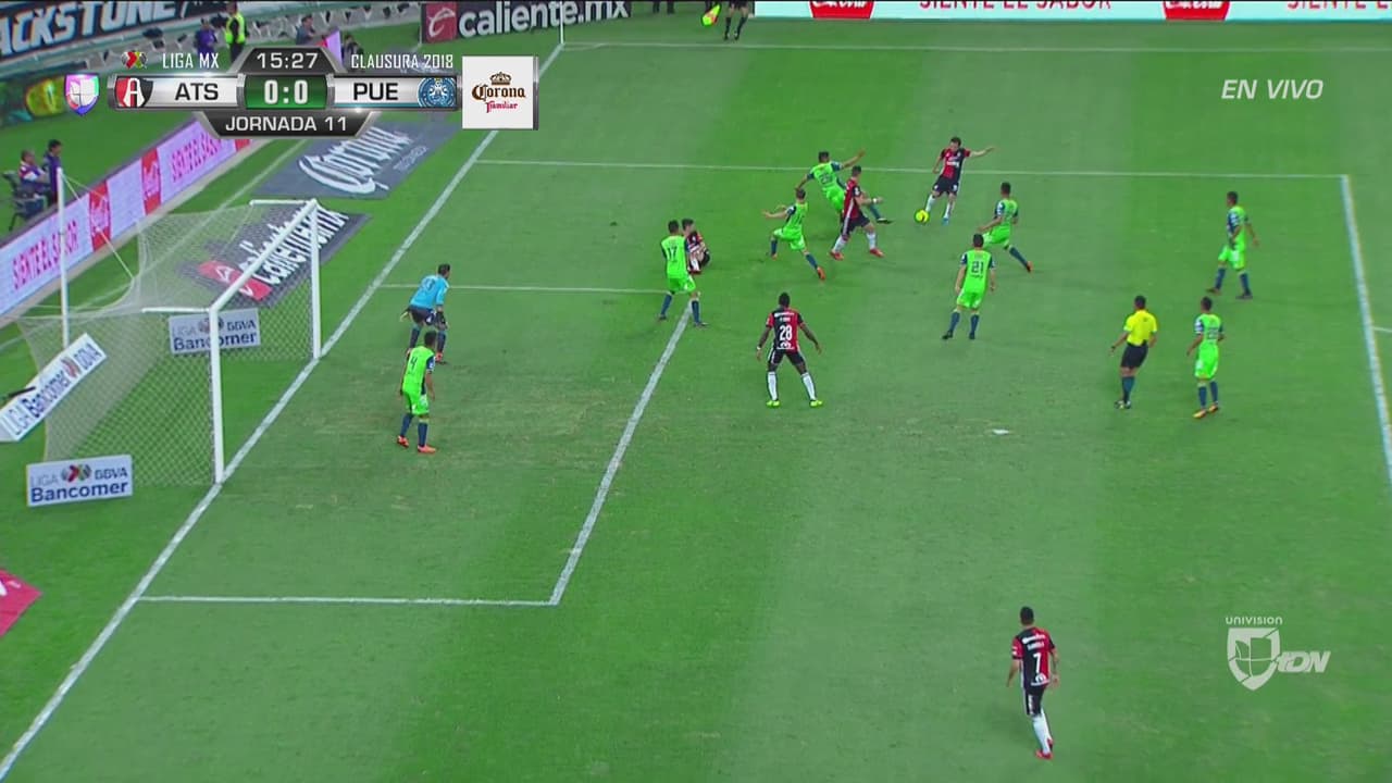 Al cuarto de hora, llegó el primer remate a puerta de Atlas por intermedio de Vigón y que terminó en tiro de esquina