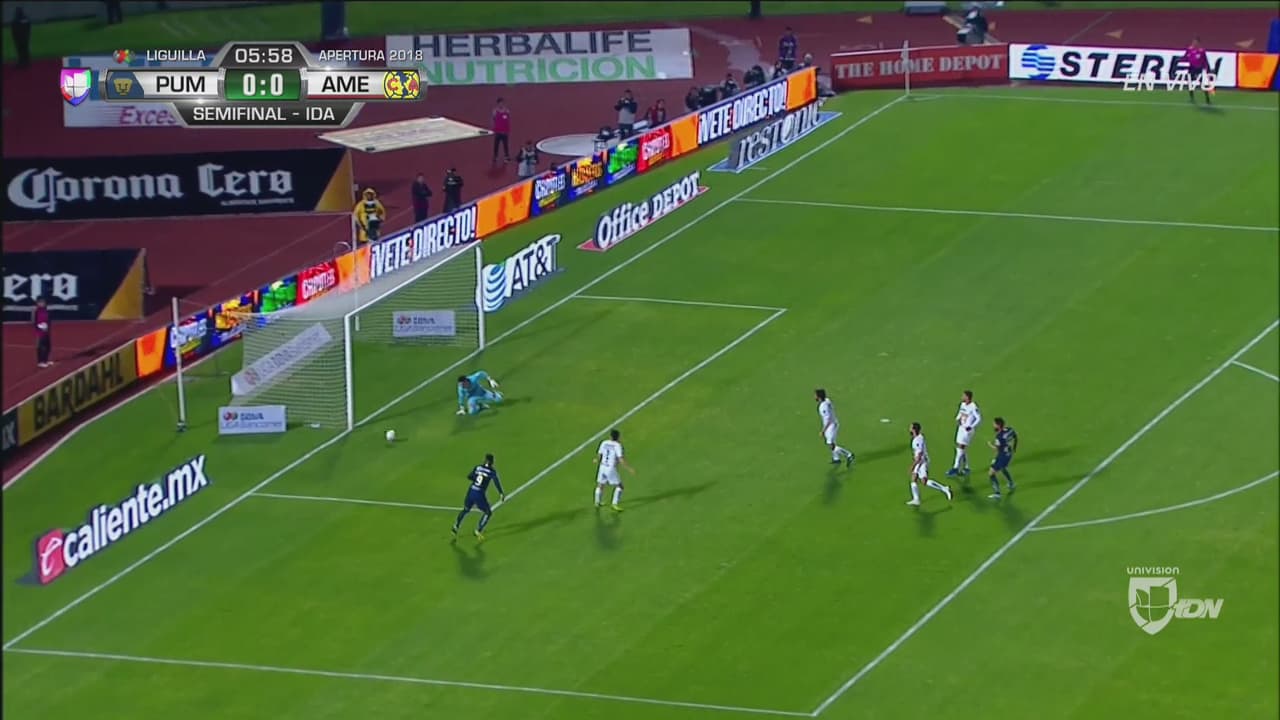Roger le bajó una buena pelota a Peralta, quien sacó un tiro raso que pasó apenas abierto del arco de Saldívar.