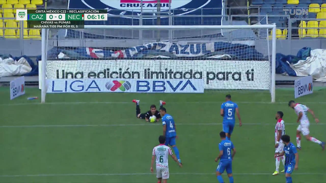 El mediocampista del Necaxa soltó un zapatazo, pero el portero controló en el fondo al 5’.