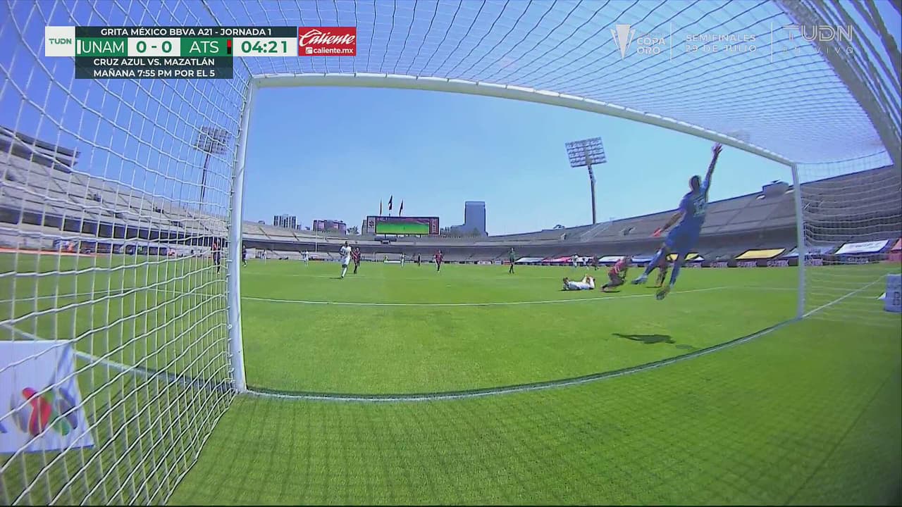 Alan Mozo mandó un centro al área y Juan se impuso, pero el arquero desvió el remate al 4’.