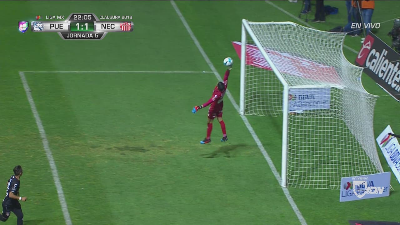 Brayan Angulo manda tiro centro y Hugo González se ve obligado a estirarse para evitar el gol de la Franja.