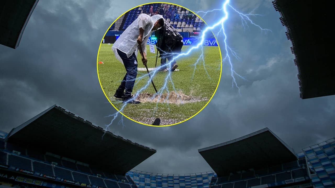 La tormenta eléctrica cesó, pero la lluvia continuó de manera leve, pero los trabajos para drenar la cancha del Estadio Cuauhtémoc fueron insuficientes para que el partido se pudiera disputar.