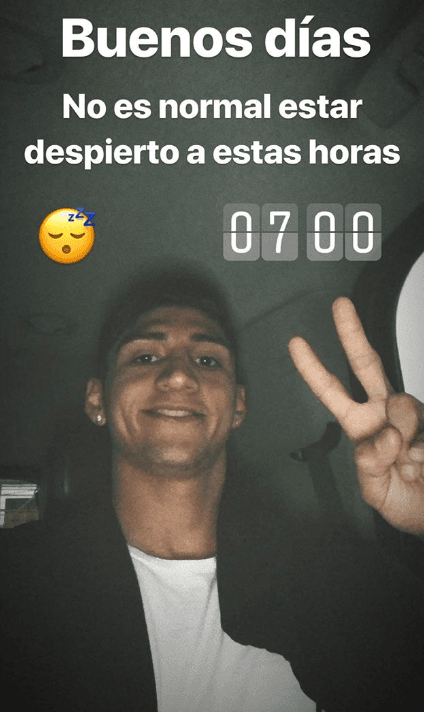 En la primera story, Pulido aparece saludando a la cámara acompañado del mensaje "buenos días, no es normal estar despierto a estas horas", como si estuviera camino a una cita importante.
