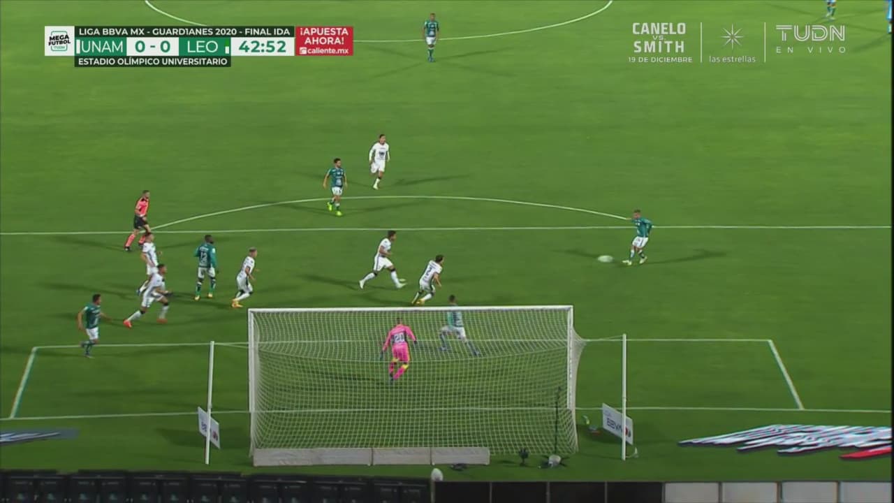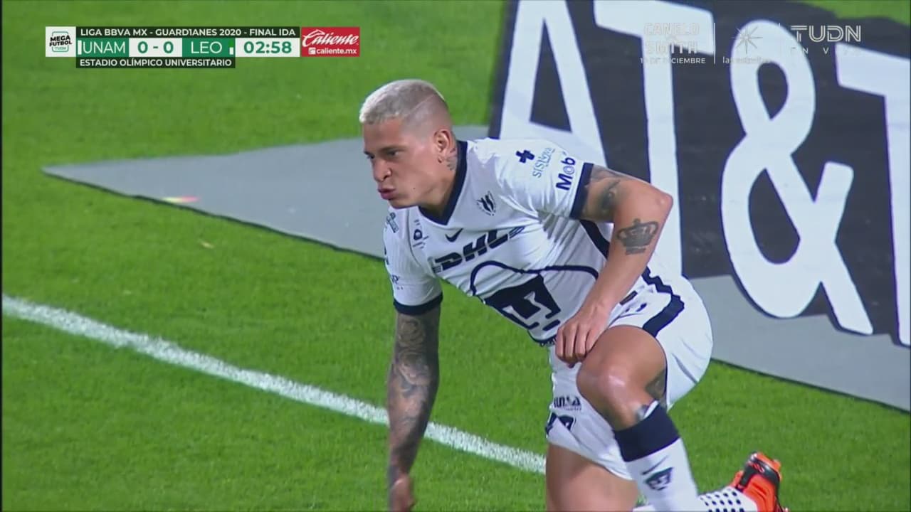 Pumas y León dejan todo para la vuelta en Guanajuato luego de empatar a un gol en la ida de la final del Guard1anes 2020. Carlos González marcó por Pumas y Gigliotti lo hizo para la visita saliendo desde la banca. Juan Manuel Iturbe y Leo López se fueron lesionados por los universitarios mientras Barreiro se fue expulsado por doble amarilla.