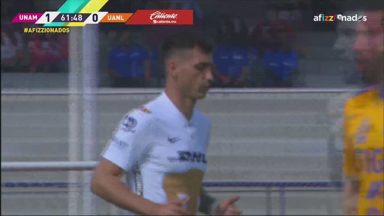 Pasaron los minutos y fue cuando Pumas empezó a tejer bien sus jugadas, sobretodo por izquierda con Jerónimo Rodríguez, quien cruzó desde segunda línea, recibió asistencia de Favio y venció a Nahuel Guzmán.