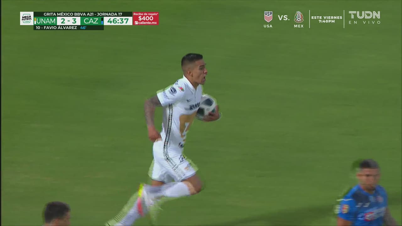 Madruguete de Favio Álvarez y acerca a los Pumas con golazo de zurda.
