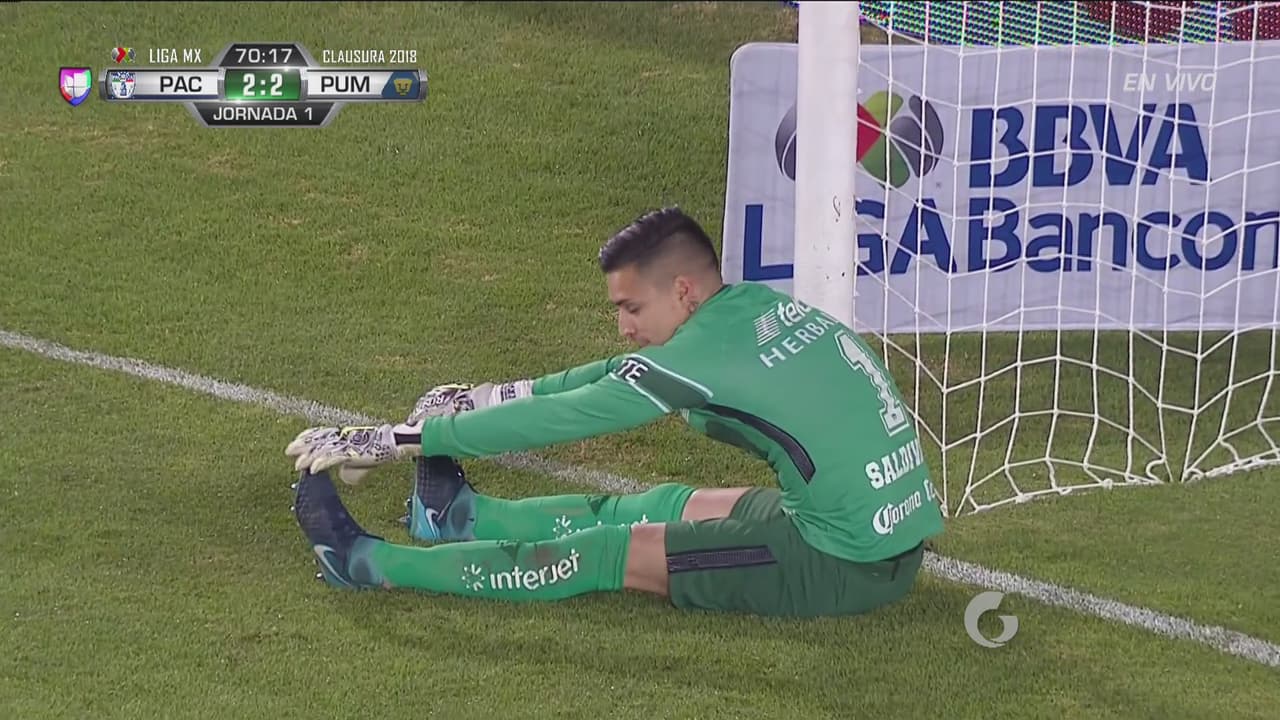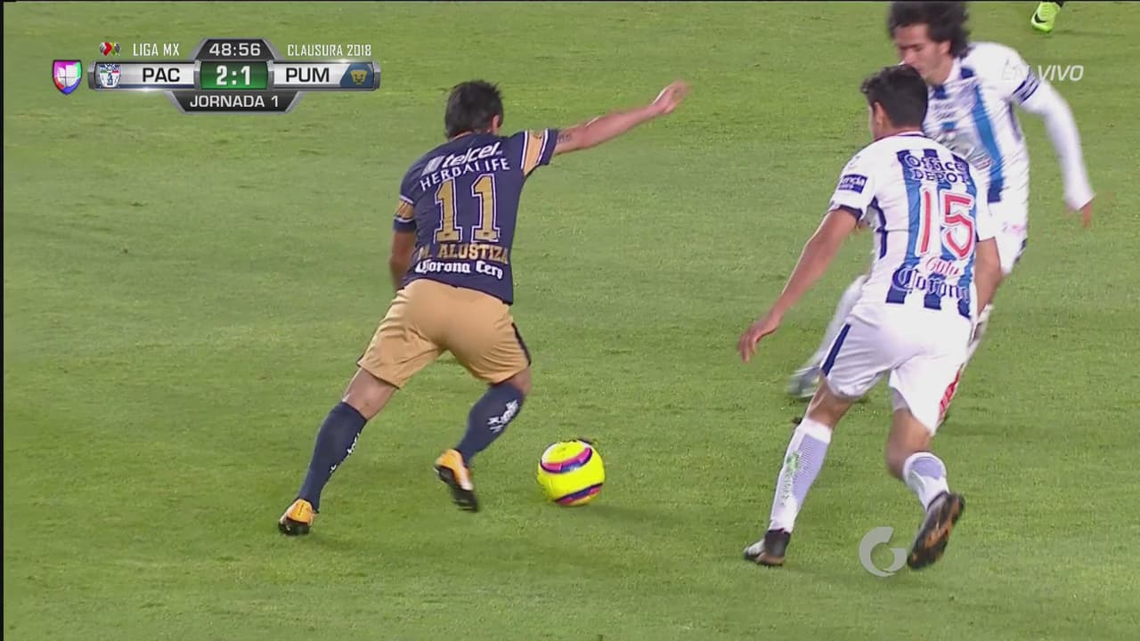Nico Castillo se atrevió de media distancia y de un bombazo ajustado al palo anotó para los universitarios. Con el Pachuca 2 – 1 Pumas de fueron al descanso.