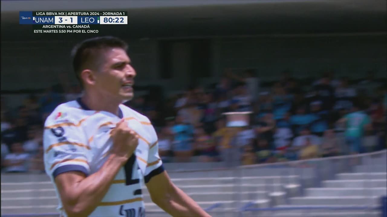 Pumas debutó con una gran victoria en el Apertura 2024 de la Liga MX tras superar en la Jornada 1 por 4-1 a León, partido que se jugó en el Estadio Ciudad Universitaria.
