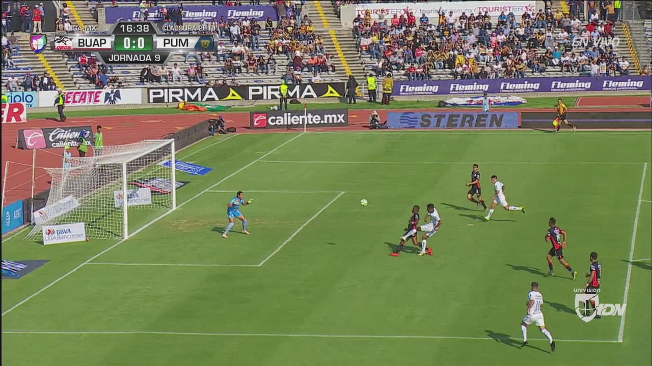 Solo ante el arco de Toño Rodríguez, Jeison desperdició la oportunidad de poner en ventaja a su equipo en Puebla.