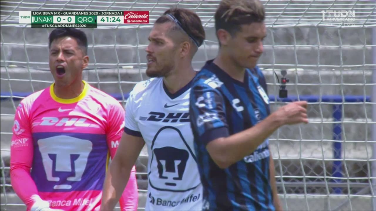 De pronto, los universitarios volvieron a dejar espacio en defensa y fue cuando Querétaro aprovechó la situación para poder abrir el marcador en cobro de tiro libre, pero Tala estuvo atento y volvió a ser factor.