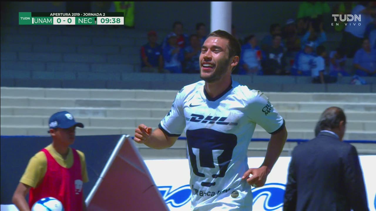 El mediocampista universitario marcó su primer gol con los de la UNAM en el triunfo sobre Necaxa