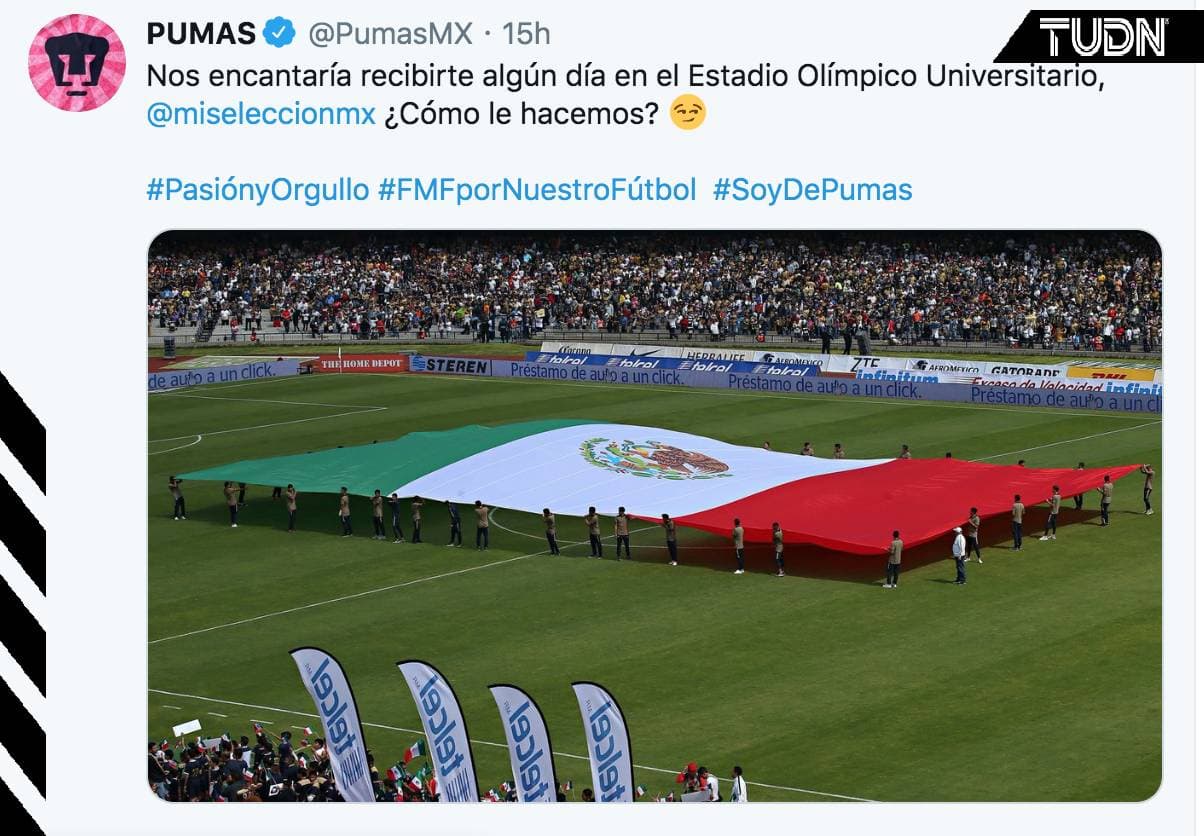Por medio de sus redes sociales, los Pumas afirmaron que les gustaría que México jugara en el histórico recinto deportivo.