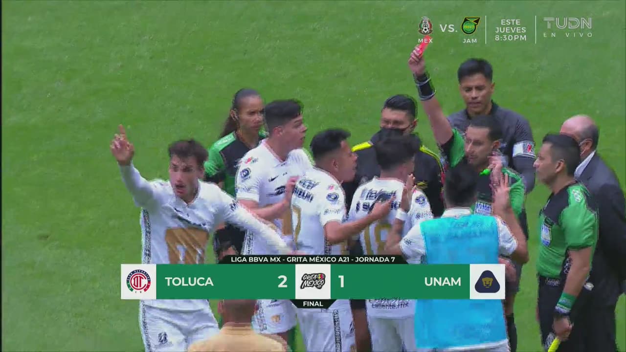 Pumas sufre tres expulsiones en derrota ante Toluca