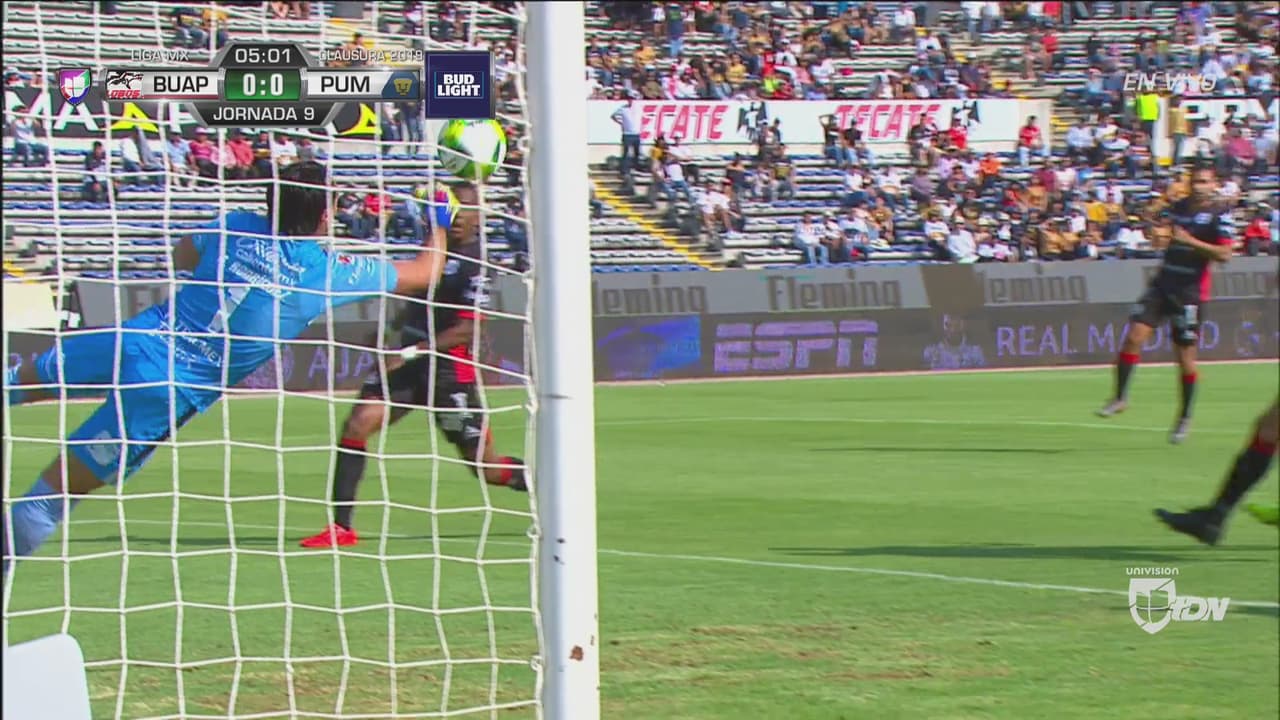 Los de la UNAM buscaban sorprender a los de la BUAP con una jugada por la banda derecha que terminó siendo ligeramente desviada por Toño Rodríguez.