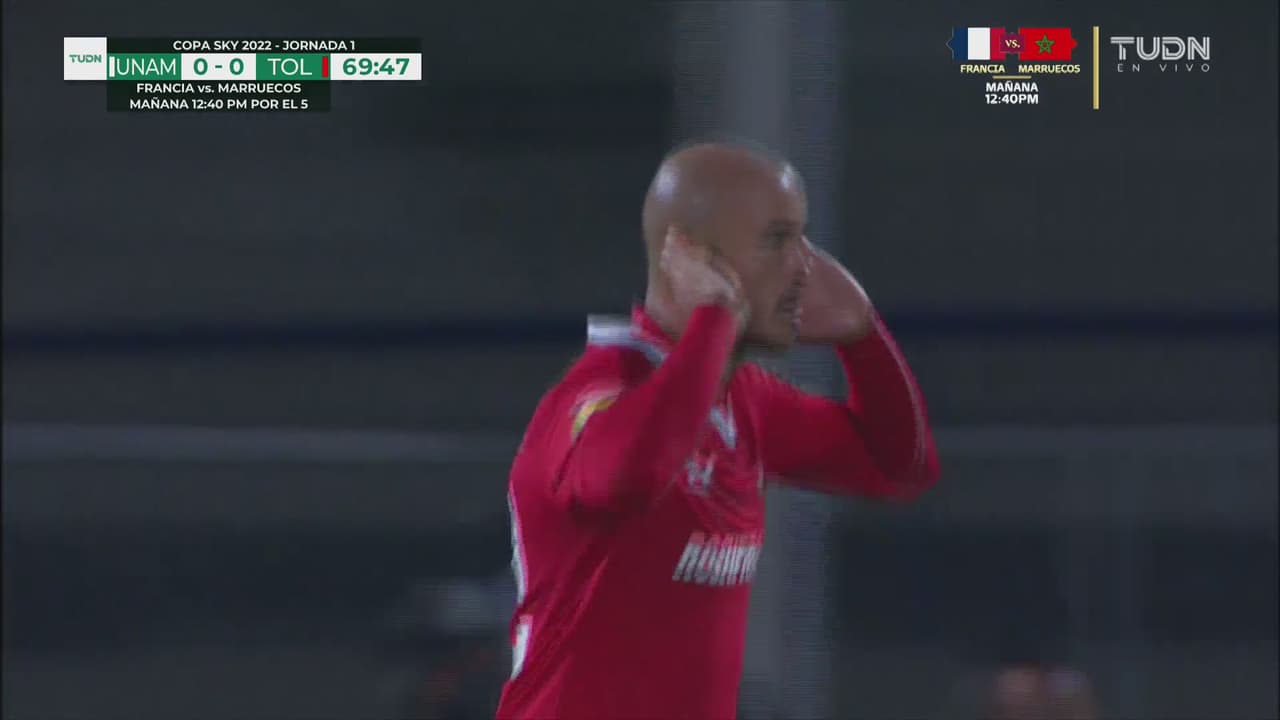 Toljuca aprovechó el balón parado y a pesar de que estuvo cerca, la defensa de los Pumas lo desvió sin problema.