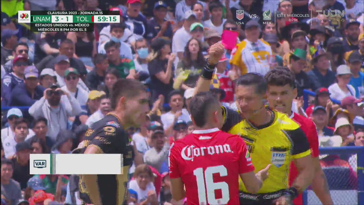 Los Diablos Rojos busca recortar distancias, pero le cuesta mucho generar juego con 10 jugadores. Mientras que Pumas prefiere aguantar y buscar un contragolpe.