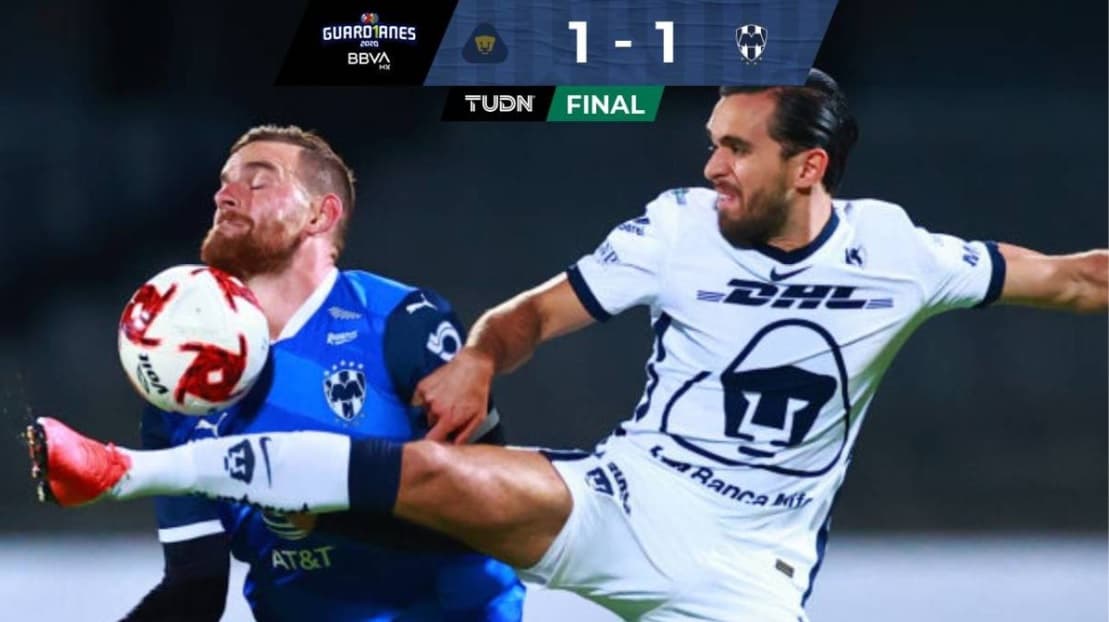 Pumas y Rayados sellan el empate en la jornada doble del Guard1anes 2020 BBVA MX
