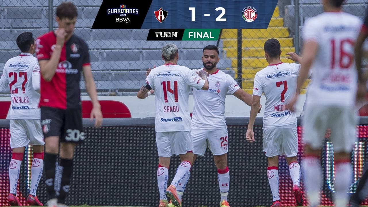 Toluca venció al Atlas 1-2 con goles de Alexis Canelo y Rubens Sambueza, por los rojinegros descontó Víctor Malcorra. Los tres goles cayeron de penal tras el apoyo del VAR en el encuentro de la Jornada 4 del Guard1anes 2020 BBVA MX.
