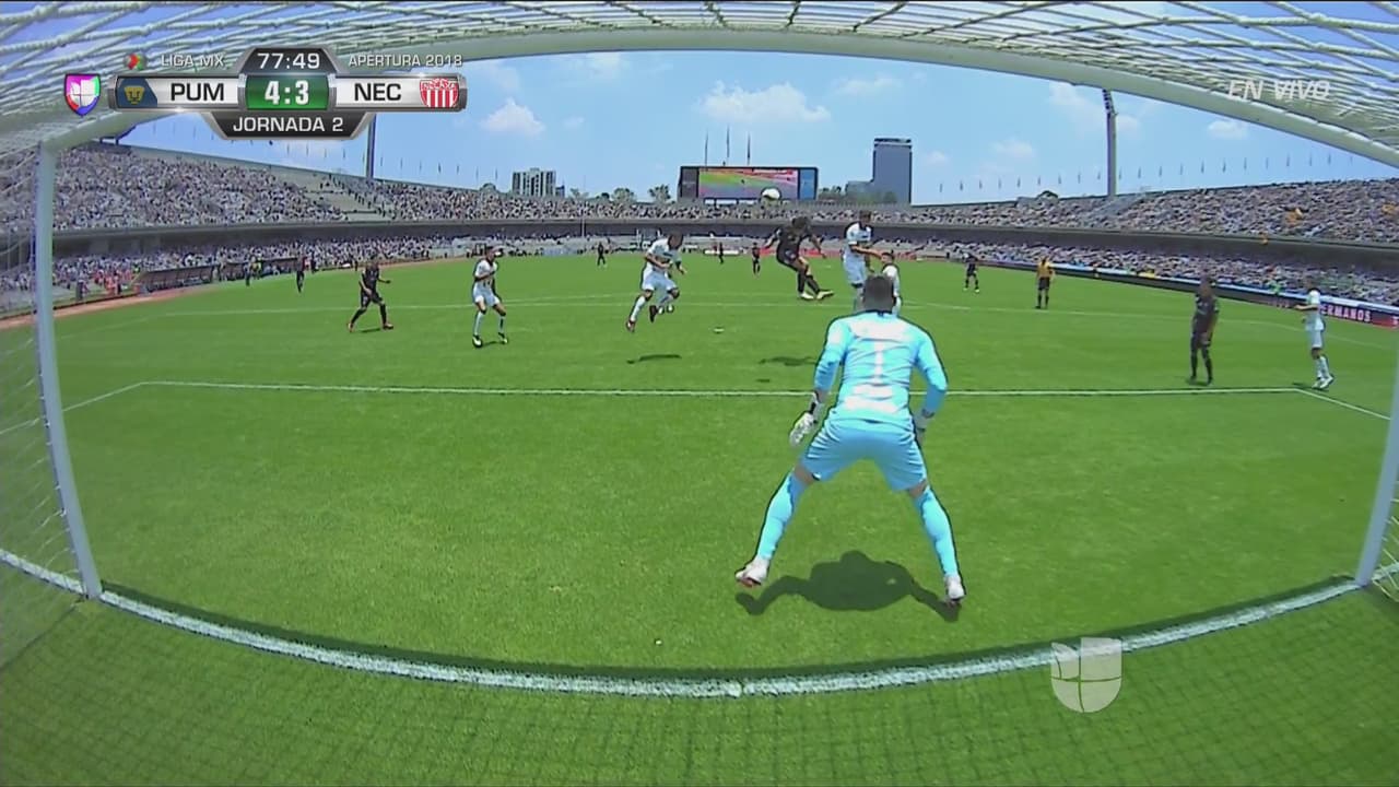 Gran centro desde la banda izquierda y Dávila de cabeza, apenas segundos después del cuarto gol de Pumas, acerca a los hidrocálidos.