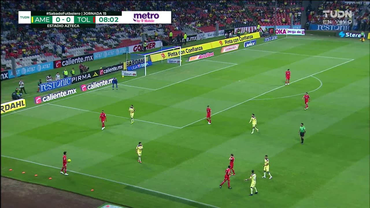 ¡Gol! América 1| Toluca 0. Diego Valdés (América) Disparo con la derecha desde el lado izquierdo dentro del área disparo rastrero| junto al palo izquierdo. Asistencia de Henry Martín.