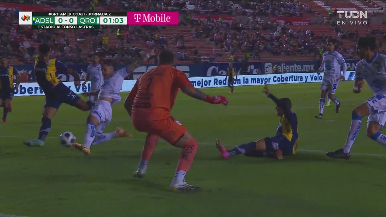 Querétaro enfurece al ver que no detienen la jugada y San Luis estuvo a punto de abrir el marcador al 1’.