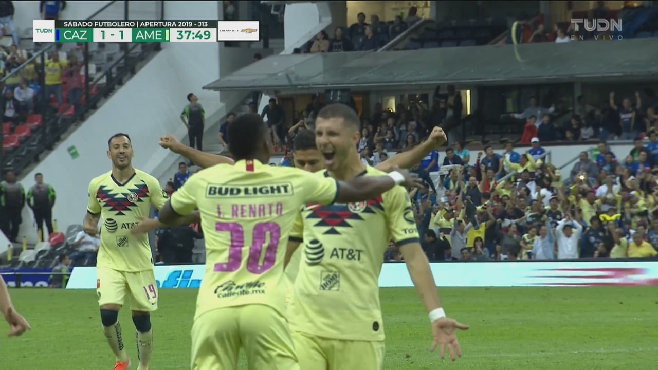 El contención de las Águilas sacó un disparo cruzado desde tres cuartos de cancha al 37’.