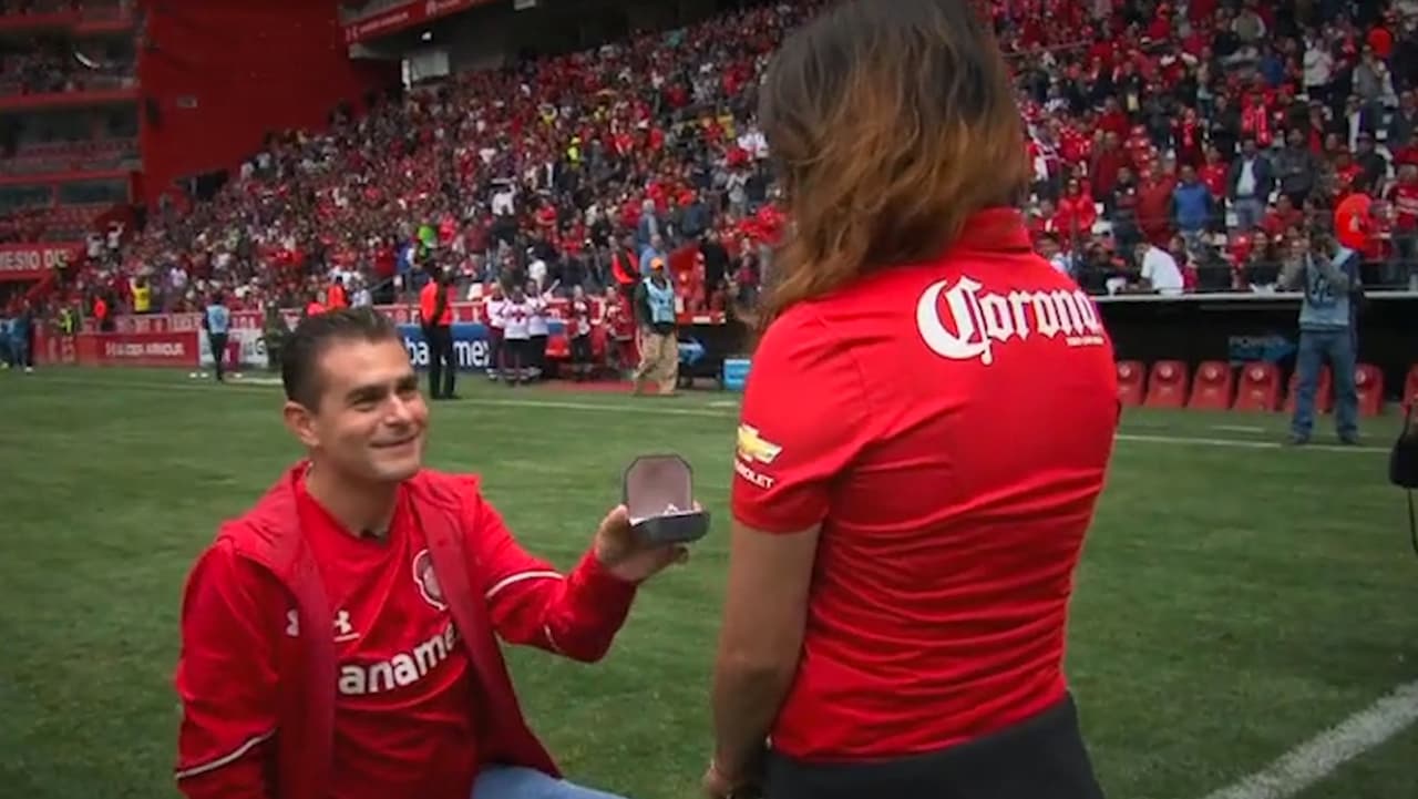 En el entretiempo del partido que Toluca le ganó 2-1 a Monterrey, en el Clausura 2018, un aficionado de los 'Diablos Rojos' se arrodilló y le entregó su vida a su novia de diez años.