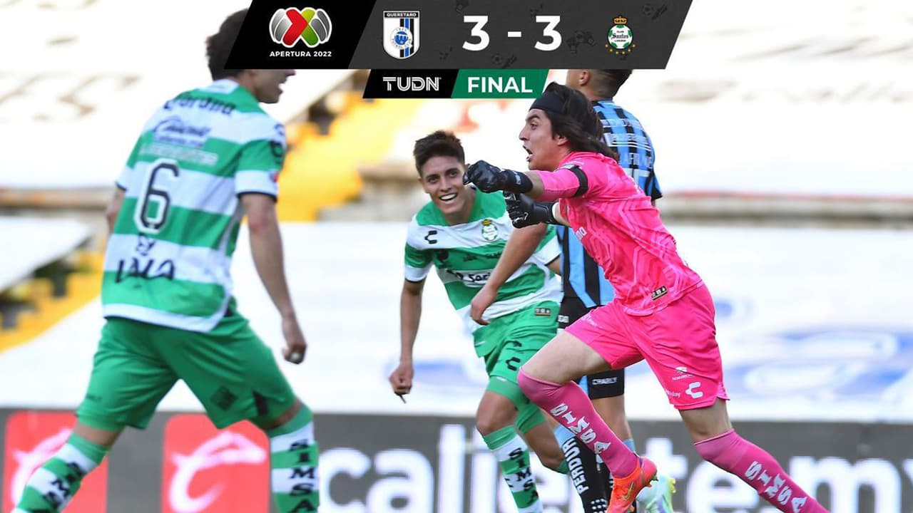 Carlos Acevedo fue el gran héroe en La Corregidora. El arquero anotó un gol en el cierre del partido y le dio a Santos Laguna el empate ante los Gallos de Querétaro por 3-3, en juego correspondiente a la Jornada 14 del Apertura 2022.