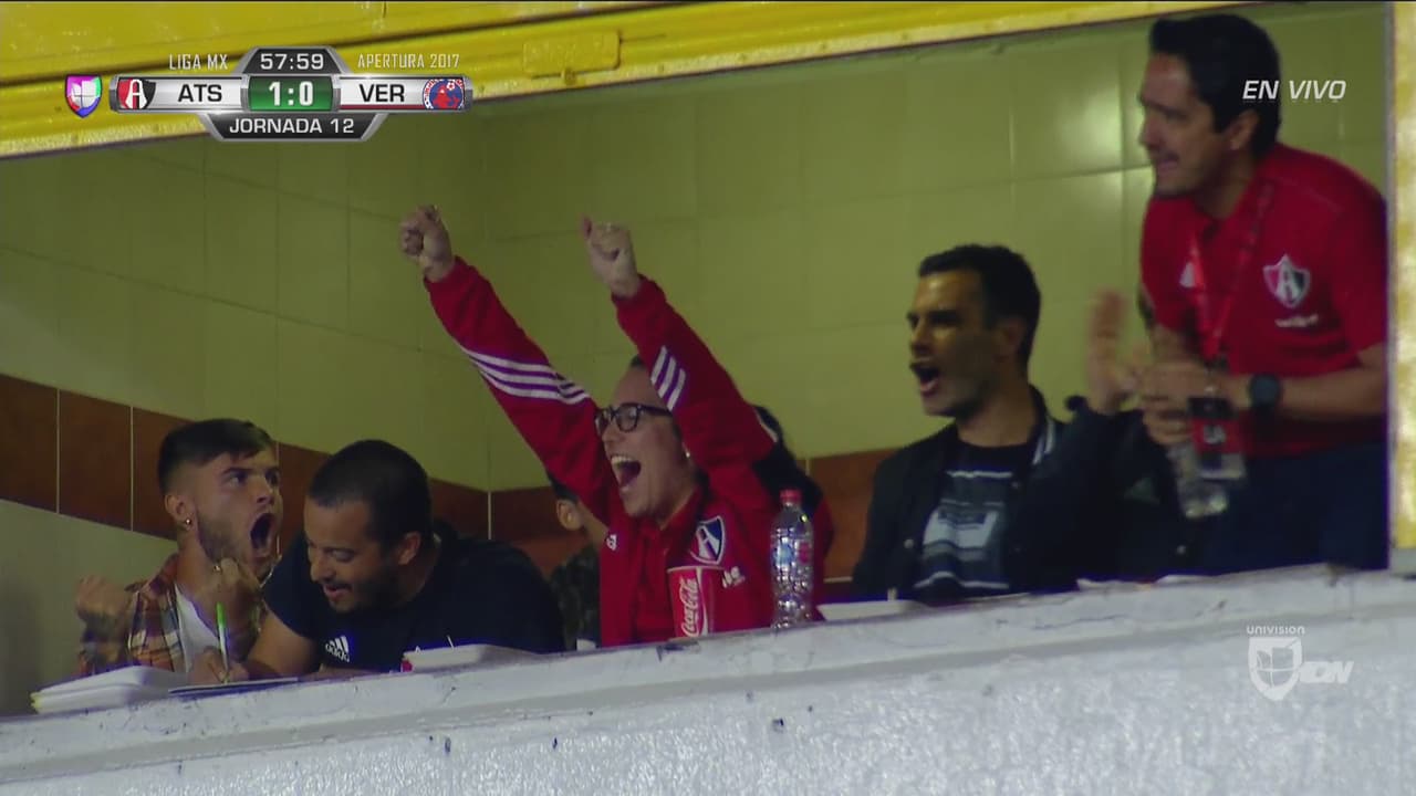 Rafa Márquez festeja en la tribuna los goles del Atlas ante Veracruz