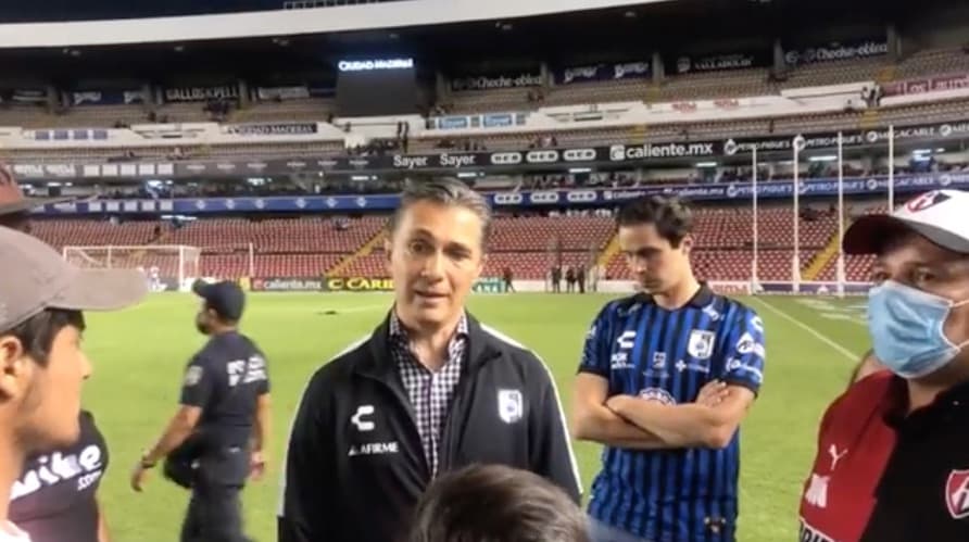 Adolfo Ríos, presidente deportivo de los Gallos, se unió a las voces que reprobaron los hechos violentos en el estadio de su equipo y de paso se disculpó con uno aficionados del Atlas que lo acompañaban en la grama de La Corregidora.