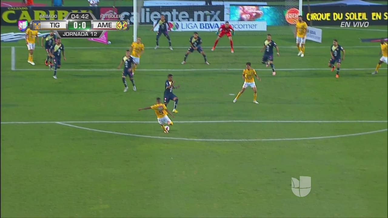 Luego de un centro de Jürgen Damm, el volante de marca de Tigres disparó con potencia, pero le falló la dirección de portería.
