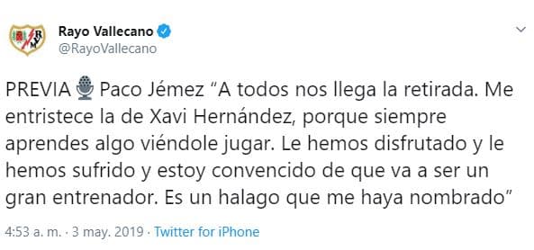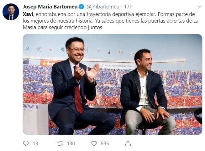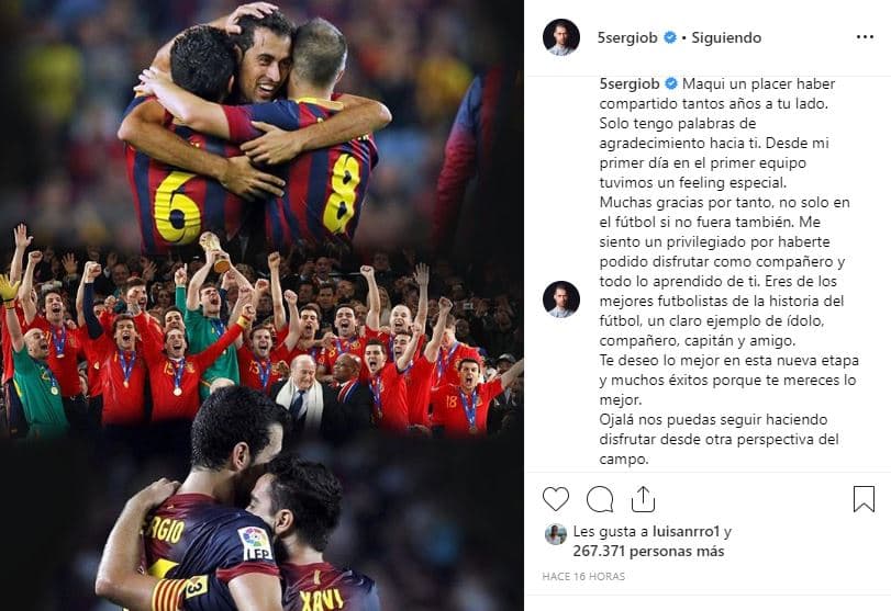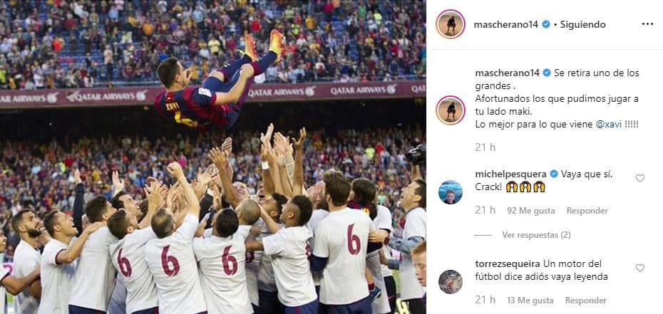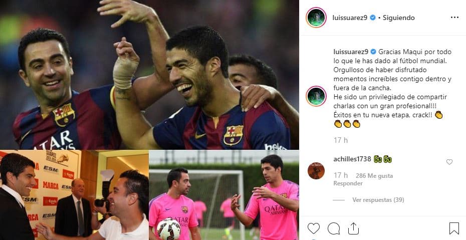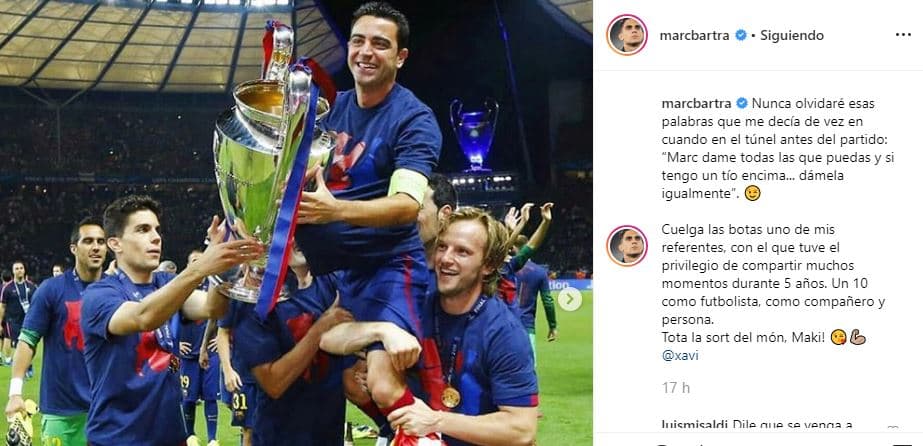 "Maki Xavi. Ha sido un verdadero placer y honor jugar a tu lado, para mi unos de los mejores jugadores de toda la historia, mis mejores deseos para lo que viene Crack!! #4ctitud", puso Márquez en su cuenta de Instagram.