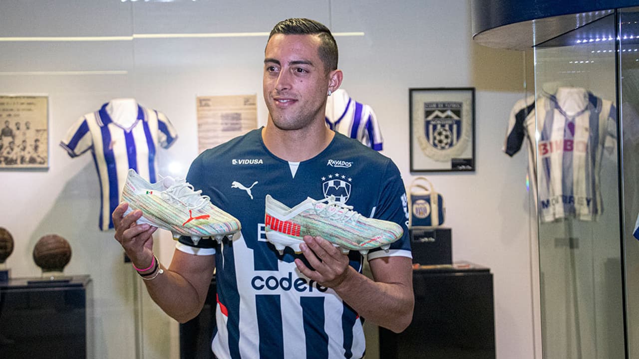 Al igual que los zapatos del 'Mellizo' resaltan los botines con los que Jesús Zavala marcó el último gol en el Estadio Tecnológico y también los que ocupó el defensor César Montes como el primero en el nuevo recinto de Rayados durante un cotejo amistoso frente a Benfica.